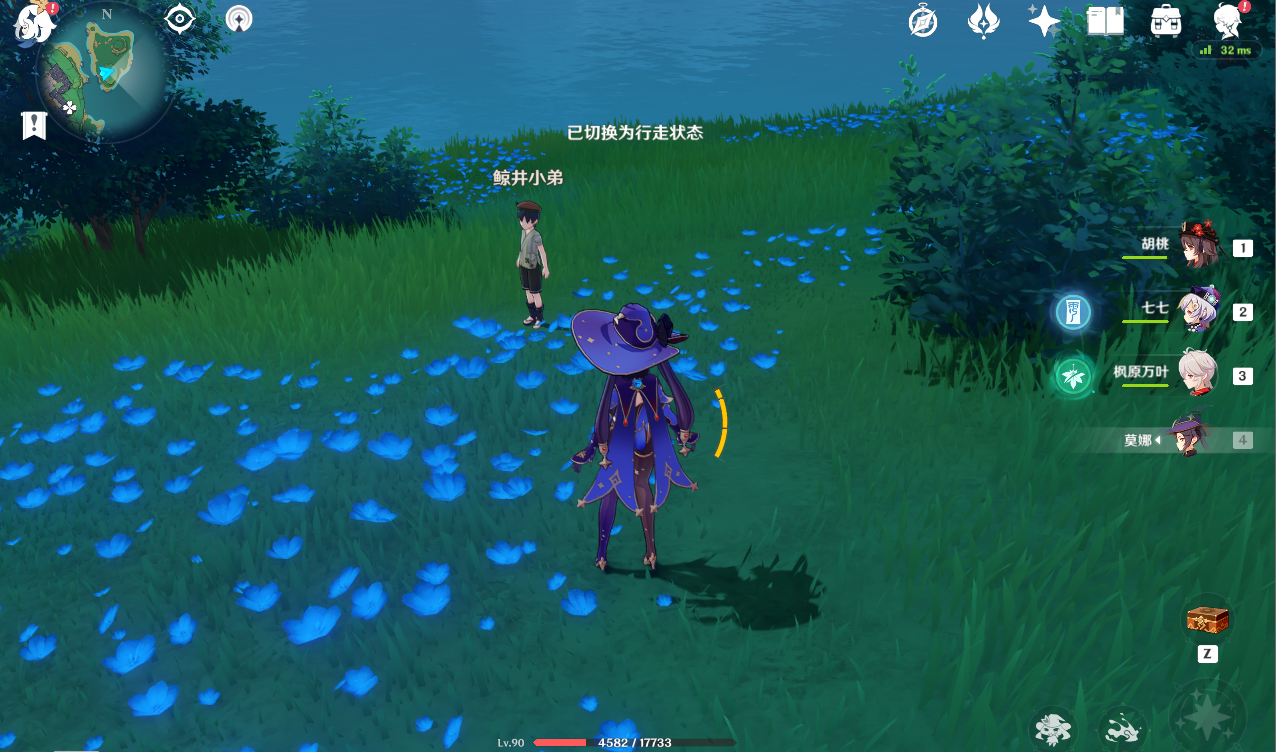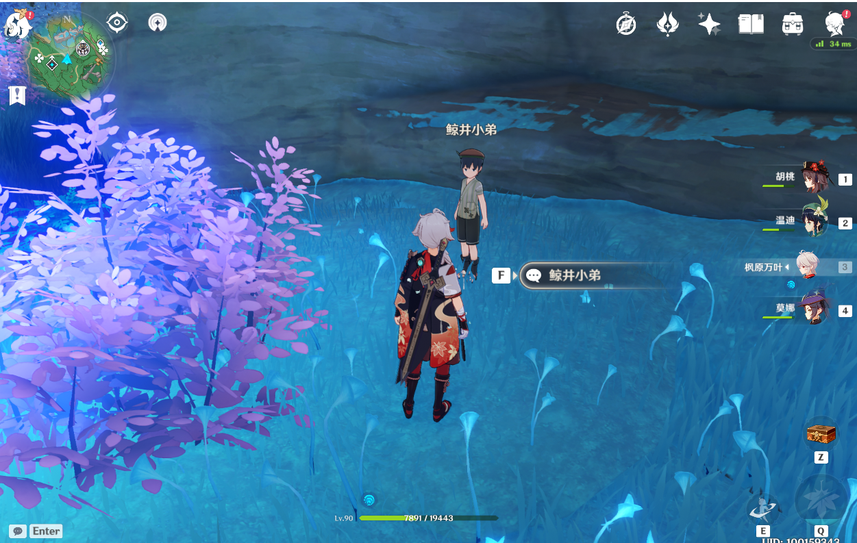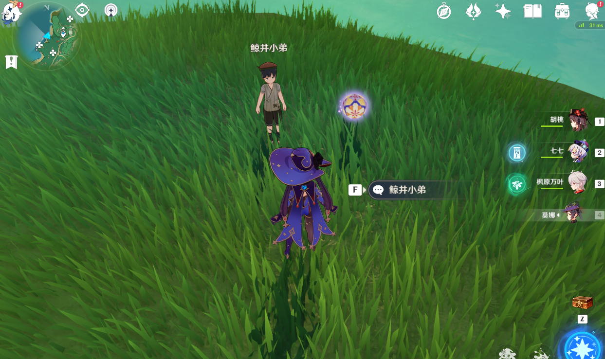 (1)来到白狐之野区域传送锚点附近,与鲸井小弟交谈触发任务,