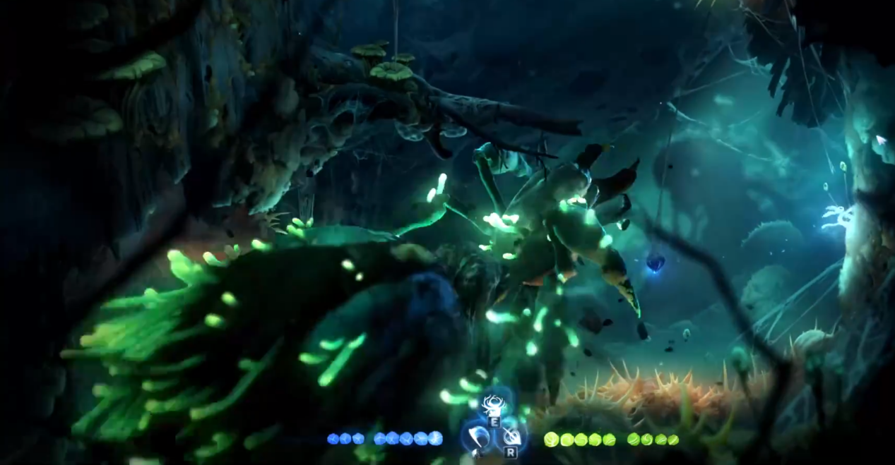 或阴云密布,或阴森可怖,或温暖纯净,奥日系列优秀的美术风格在氛围渲染中起到了至关重要的作用,即使在BOSS战或逃脱战中,紧张的操作之余玩家仍然会很大程度上被巧妙的背景构图所吸引,这也是奥日系列始终能够傲视业界的亮点之一。