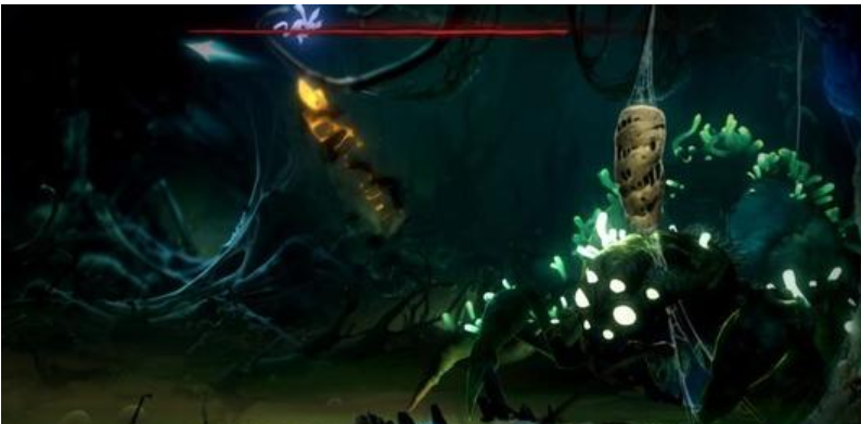 接下来,是本作相对于前作最大的亮点,即BOSS战。前作始终以逃生迂回为主,面对大BOSS黑子,主角脆弱的身板显然不足以正面对抗,而在《奥日2》中,主角将在每个区域都面临一次BOSS战,从开局獠牙毕露的野狼豪尓,到黑化的巨形蛤蟆夸洛克,地底洞穴的蜘蛛女王……每场BOSS战都与场景有着非常密切的互动,压迫感十足,玩家需要竭尽所能,躲避,反弹BOSS的技能,并利用自身的战斗手段对BOSS造成有效伤害。