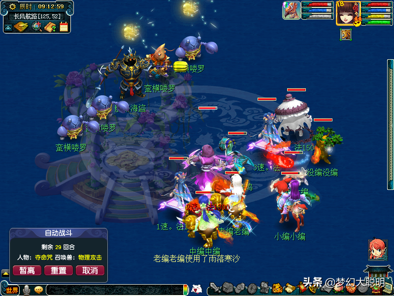 起罗汉这里大部分怪物都是法系,村长是封系最后杀就行,他左右两个是大唐开局点杀一个他们血量降低一半后无法出手,然后封狂刀(鲛人),慢慢清掉灵蛇(变鲛人卡可以克制灵蛇)
