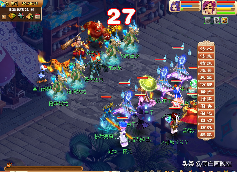 这里必杀情丝魔将,然后拖出来助战,效果是水清。一速配水清,美滋滋。