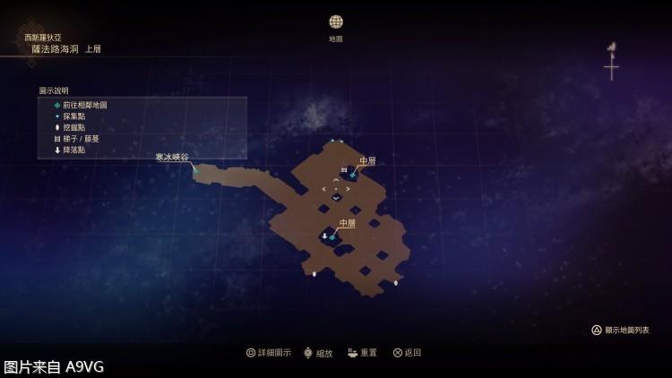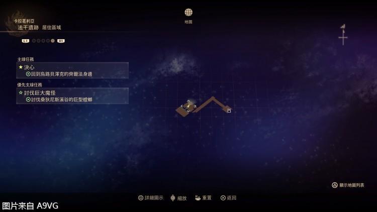 一开始,只能朝星号走去,按□可以看地图,PS4 /X or PS5/O是跳跃。主题界面是保存和领取dlc的地方。游戏自带2个自动存档。