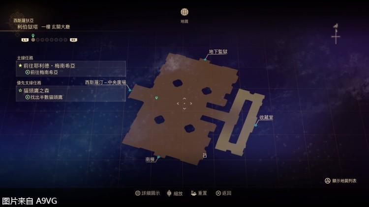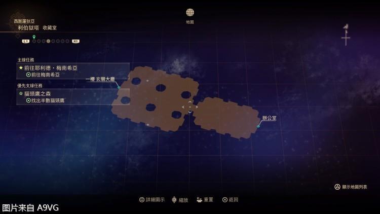 进入地下监狱,走到底的桌子上拿到一楼升降梯的钥匙,可以去开启1f右侧升降梯了,上去2f后,小剧场x1。右下角房间书架上,调查达纳枭,然后右边的房间操作平台解锁电梯。