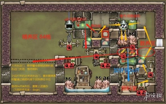 从孵化区出生的小螃蟹在一格的孵化区里安然度过童年长大后,来到着蟹生中最重要的岔路口,向左 or 向右。左边是精养区,里面的蟹过着“快乐”(字面上的快乐)的生活,直到老死。