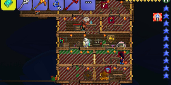 接着雪怪法杖是一件召唤法杖,使用后可以召唤小雪怪来进行战斗。雪怪法杖召唤出来的雪怪可以对敌方造成6-8点的伤害,但是击退能力比较弱。