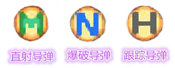 游戏中的辅机也分为三种,分别是:直射导弹、爆破导弹、跟踪导弹