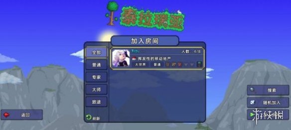 当我们完成角色创建后,点击”加入游戏”。我们可以在这里搜索别人的房间来加入。房间分为开放与私密。开放的房间通常是欢迎所有为联机而来的玩家准备的,而私密房间则是设计给那些好友之间一起玩的玩家们;