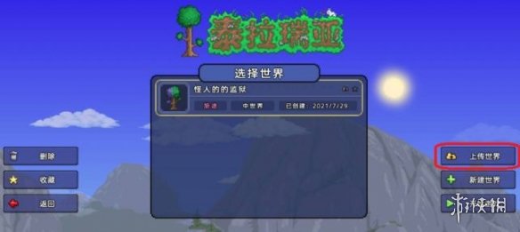 我们选择这个“上传世界”,就可以将我们的世界上传到TapTap的云端服务器上。这样以后当我们在其他设备上游玩时,只要能登录TapTap的社区账号即可加载储存在云服务器上的地图继续游玩,不用担心需要临时开存档了。