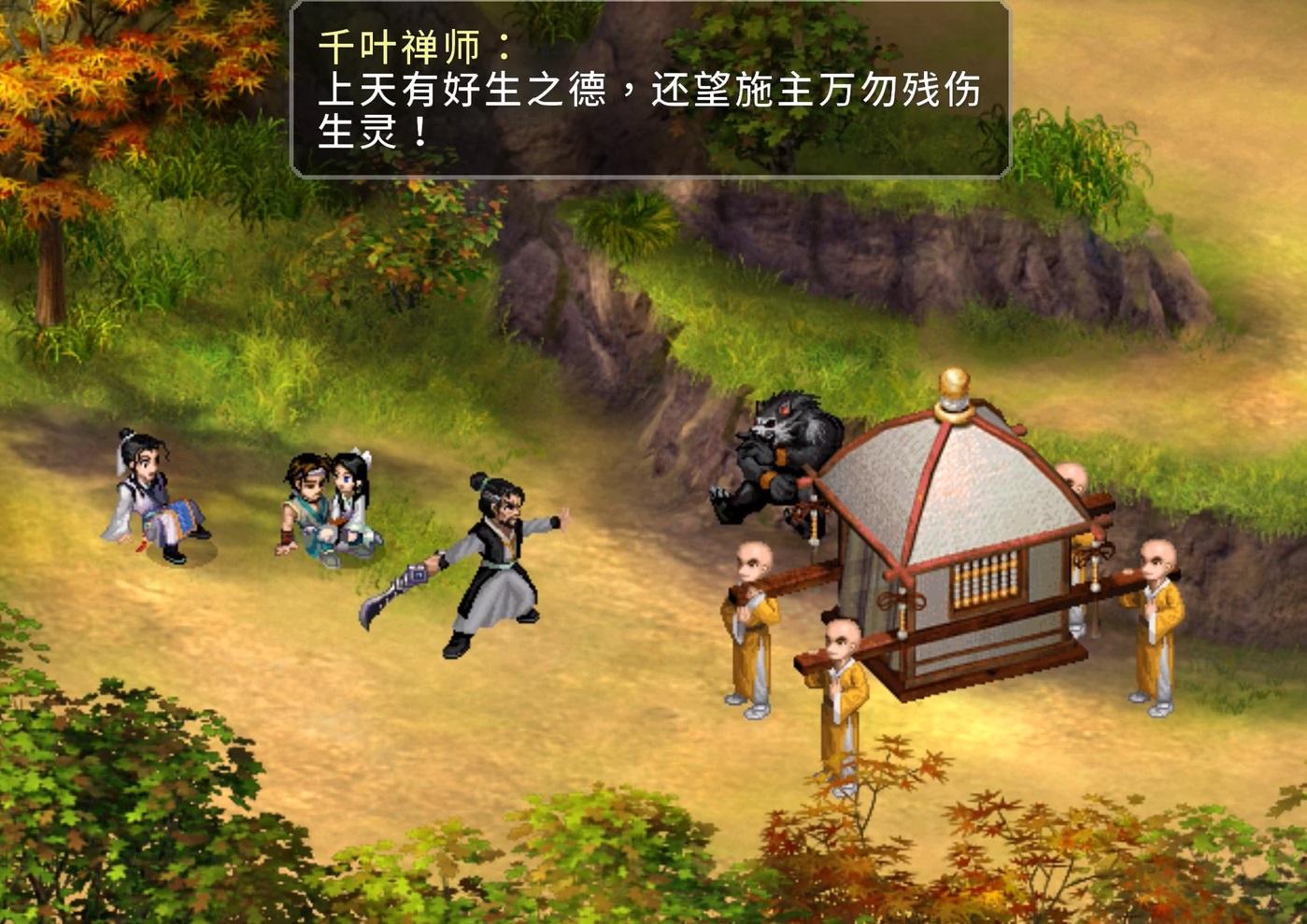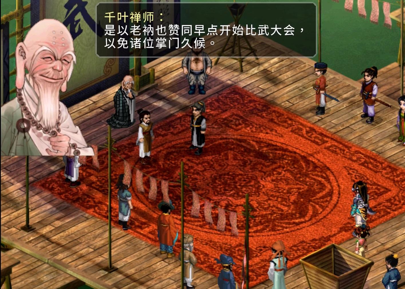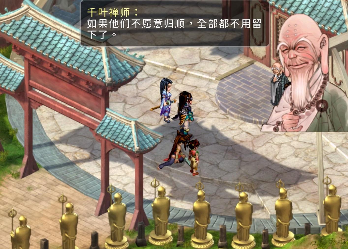 游戏用这一幕向玩家交代了千叶禅师的的背景,他是开封大慈悲明宗的主持,在武林德高望重,备受崇敬,江湖中但凡有什么矛盾纠纷,都会由他出面调解,一些重要的行动也会由他主持,没人会驳他的面子。