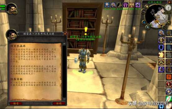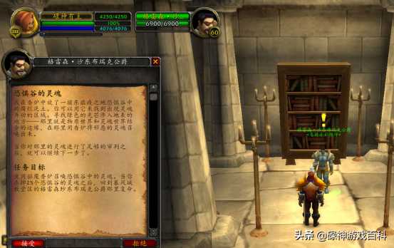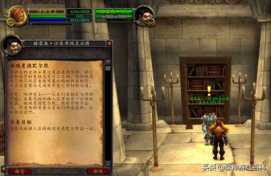 高阶牧师洛汉在铁炉堡左上角秘法大厅中,最好找法师开门去,出传送门就能看到这个秃头大叔。大叔乐呵呵的收下150金币,然后将驱魔香炉交给玩家,要求转交暴风城的格雷森公爵。