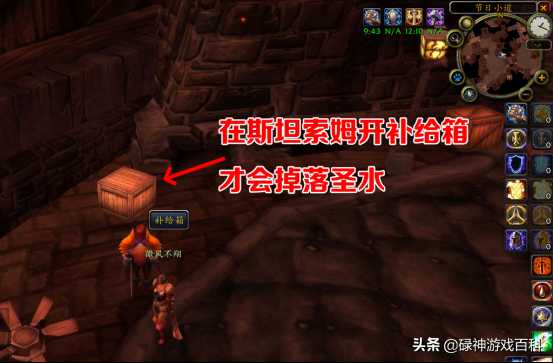 如果前期没有准备,符文布、奥金锭、阿尔萨斯之泪可以去拍卖行买。但【斯坦索姆圣水】是拾取绑定的,只能去斯坦索姆开补给箱收集。斯坦索姆副本的怪物控制技能较多,记得组上强力队友一起去。【斯坦索姆圣水】要房子边角上的补给箱里面去找,概率不高,要有耐心才行。