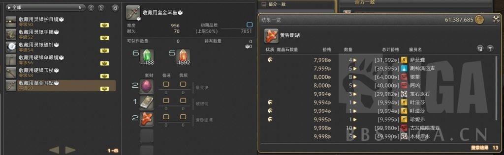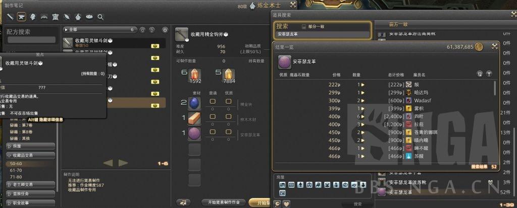如果你只供给一个职业,是能够直冲到70的,至少我自己是这样的。实在不够就拿简易凑!5.关于搓60级收藏品,我没有办法提供宏和三维线,这需要你自己写宏。我能说的是,搜刮一下板子上面的nq过气食物,加制作力和加工的,超级便宜。