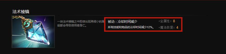 不过有一说一,在3级中立道具加速护符减少10%的冷却时间的情况下,作为4级中立道具的法术棱镜这减少12%冷却时间与8点全属性的加成确实是挺离谱的了好吧!