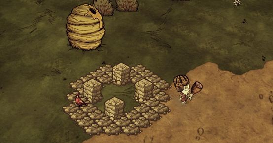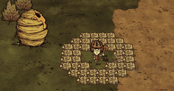 触手阵法介绍这是目前最主流的打法。但这是老奶奶专属。需要准备的材料有石墙两组,触手书至少5本。首先建造一圈边长为6的正方形石墙(共20石墙),然后在外围对齐中间四个墙建造第二排石墙(共16石墙)。之后用武器把这些墙打平,然后在正方形内层的4个角各放一个石墙(4石墙),打平。正好两组石墙用完。