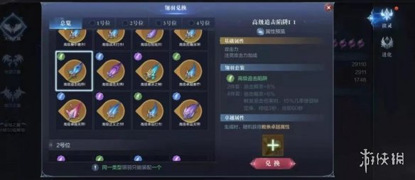由于圣射手偏向于辅助治疗系,相较于其他职业来说,其自身的伤害能力略有不足,所以在翅膀翎羽的选择上,老板娘我推荐高级追击陷阱。