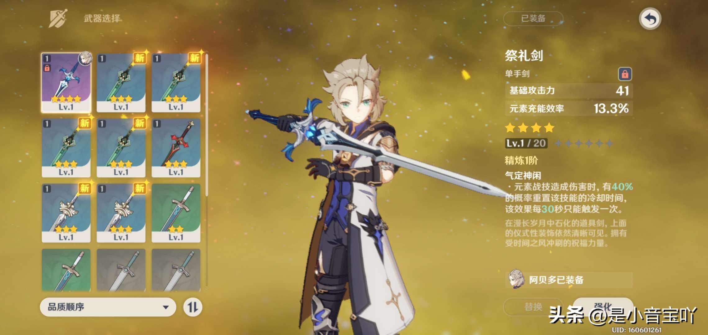 祭礼剑。祭礼剑的全部属性行秋都可以完美利用到,刷新的内置cd在精炼3后更是和行秋的技能几乎完美的重合。用最少的资源换取了最大的提升。其余武器以高基础攻击值为最优先,副属性暴击爆伤优于攻击力,尽量避开副属性为元素精通和物理伤害提升的武器。