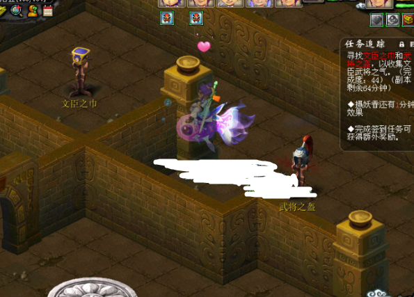 分分钟完事,重新组队,到房间(编号10)右侧发现“文臣之巾”、“武将之盔”