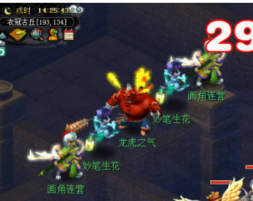 进入战斗,一只瑞兽招呼几个分身,找对分身杀掉,其余的都会逃跑。只要注意主喊话的字体颜色,找对应的杀掉就行