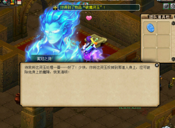 战斗结束,通过有“神秘道人”和“身外身”的通道(依然注意不要触碰这俩老头),回到左室(编号4),点击“冕冠之灵”提交任务