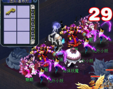 切入战斗,这场战斗算是衣冢里比较难缠的一场(主要是怪物血量太厚,手都砍酸了),主怪HS,天将为ST,鬼将为FC,天兵为法系面伤输出,前排随机门派,打酱油可以忽略。后排双天将血量大概2W左右,一定回合数之后,天将会自行逃跑,会鹰击(防低者伤害还是挺可观的),根据观察还有个特点,就是会对气血最高的对象发动连环击(我媳妇儿血量7000+,总这么打我媳妇儿一个)关于杀法,个人推荐优先击杀天兵,如果队伍抗不出天将的输出,那就集火击杀一个天将,如果带WZ那就省事,套上就安逸了,其他的悉数击杀就OK。