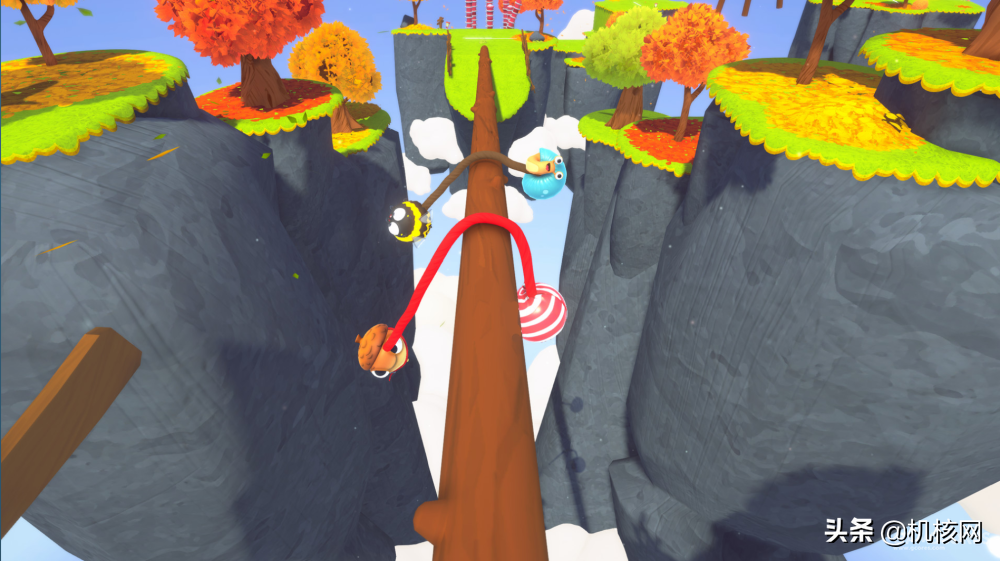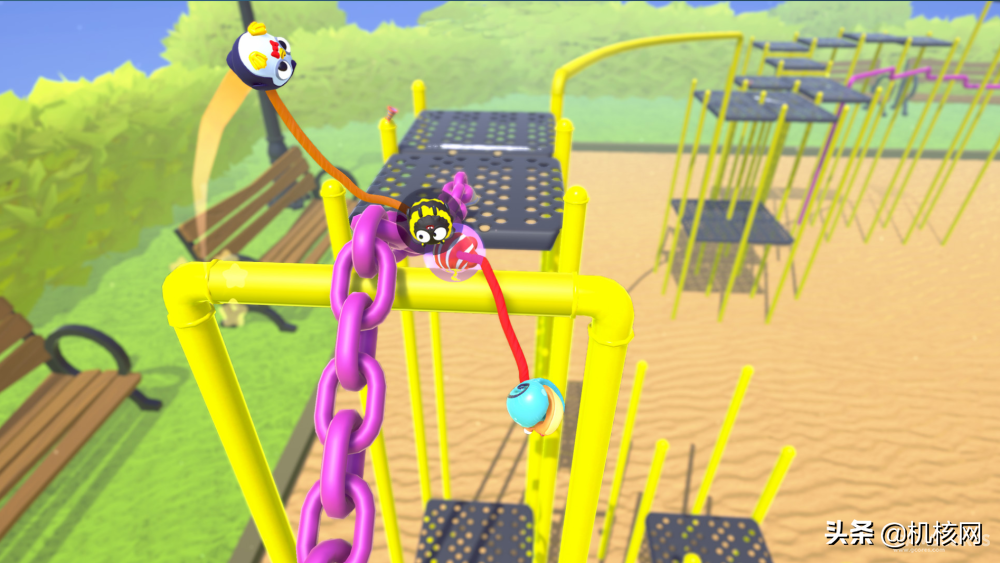 而游戏的精髓就全在两个人在“拧成一股绳”时的过程,无论两个操作技术有多好的玩家,如果在没有沟通,不懂得相互配合的情况下,都在游戏中会“吃尽苦头”。可谓是充分的解释了什么叫做“合作”。而“拉扯”这个词也并不仅是代表会拖后腿,游戏中也有大量障碍物需要利用弹力绳的弹力来通过,要让弹力绳发挥最大的张力,显然需要一方使劲的进行“拉扯”,将另一方“狠狠地”弹出去。