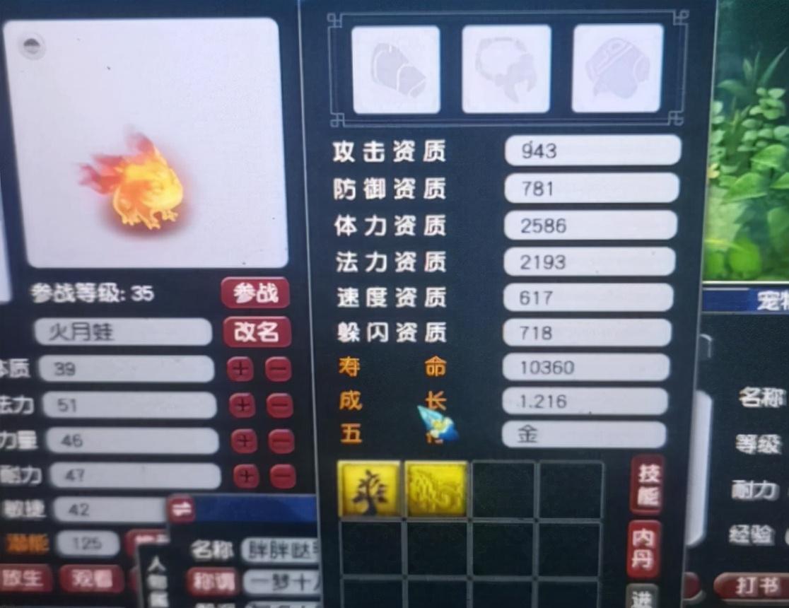 但是造型越稀有的召唤兽合成的时候出现多技能的可能性就会越低,上面的这组炼妖合出来了一只两个技能的火月蛙。但是上面这组炼妖的结果也不是不能继续玩下去,这只火月蛙洗洗还是能继续炼妖的。