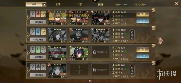 这时候,新手指导让我们打二级地(没给任务之前尽量别打),跟着任务去补兵,二队也是,补满兵后轻松打二级地