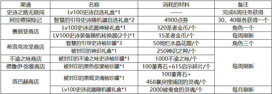 不论是随机史诗罐子还是自选史诗礼盒都在我们凑齐史诗套装的路上起到了举足轻重的作用,笔者将各类史诗罐子的获取途径给大家整理在下方,供小伙伴们参考使用。
