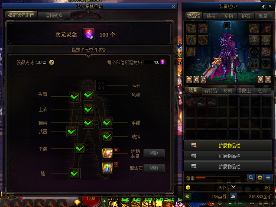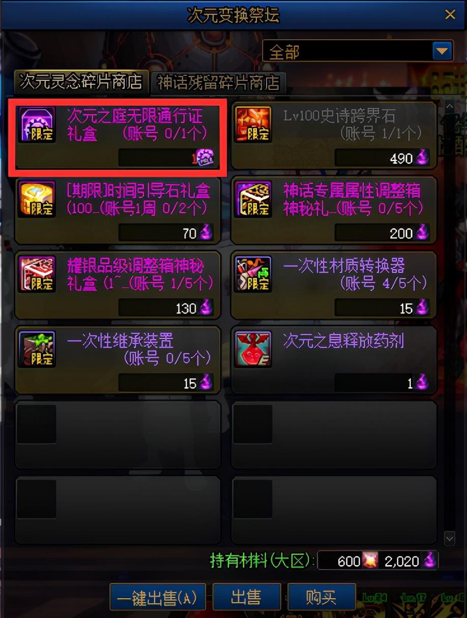 这里要注意一下,次元变换祭坛中的指定史诗系统中每个部位都可以使用700次元灵念兑换一件史诗装备,单角色每个部位只能兑换一件,账号一共可以兑换12件,小伙伴们也可以自行规划。