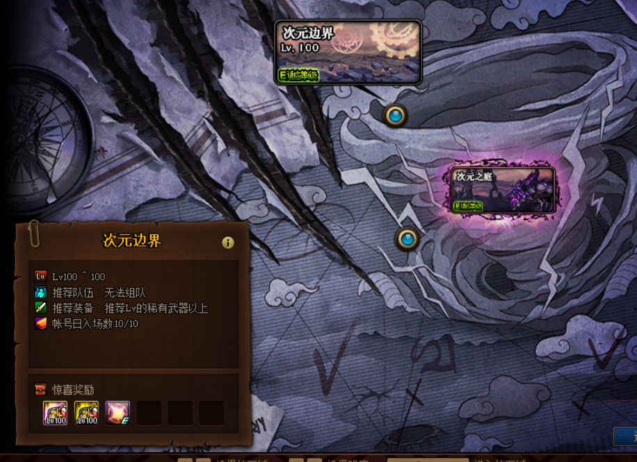 不需要疲劳和门票,每日可以通关10次的次元边界小伙伴们不要忘记,积攒材料可以获得心仪的神话装备。大家往往第一时间会去次元之庭,刷完之后可能会忘记次元边界,笔者在这里提醒一下各位勇士们。