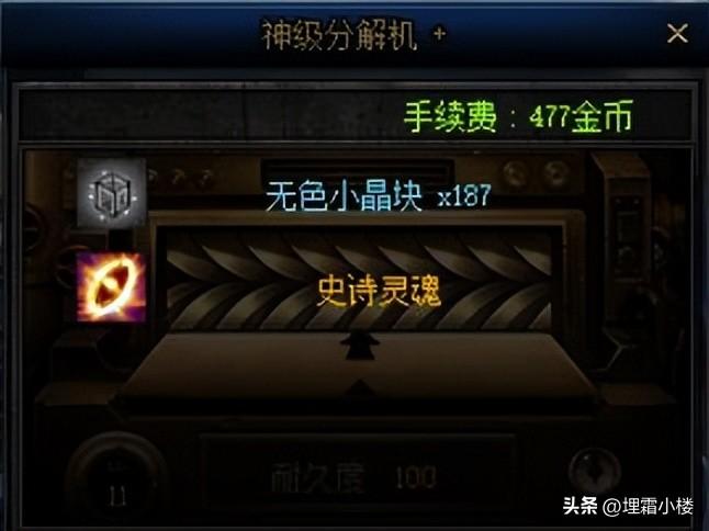 目前普通地下城中产出大量史诗装备,通常情况下每管疲劳能够掉落4-6个史诗装备,词条等级较低的装备可以直接分解,获得的史诗灵魂可以通过NPC商店1:1兑换成灵魂之源。