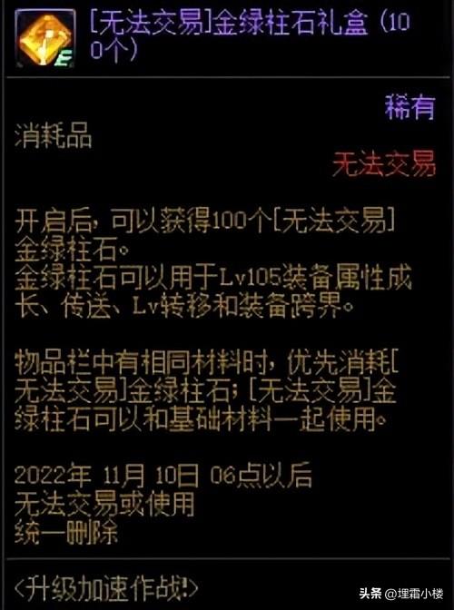 [无法交易]金绿柱石与金绿柱石(账号绑定)可通过剧情地下城与普通地下城获取(掉落、加百利商店、紫色翻牌),无瑕的金绿柱石(可交易)可通过普通地下城与高级地下城获取。