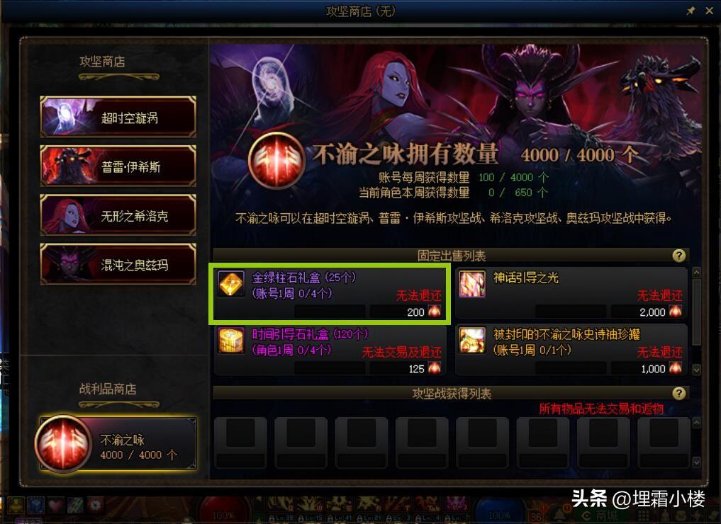 在110级版本中,奥兹玛攻坚战竞拍战利品中增加了[金绿柱石礼盒],打开可随机获得100-200个金绿柱石,竞拍时需要注意性价比,当价格太高时可以适当放弃。