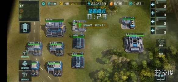 根据雷电的设定,为大家在这里梳理一下它的具体实战思路。我们要使用雷电的话,就需要一个较为稳固的经济基础,所以在这里推荐以四个补给中心作为部署模式的开局,后面可以增加至第五个。并且要在开局建造好突击车厂和兵营侦查对面的动向,同时可以争夺一下地图资源。