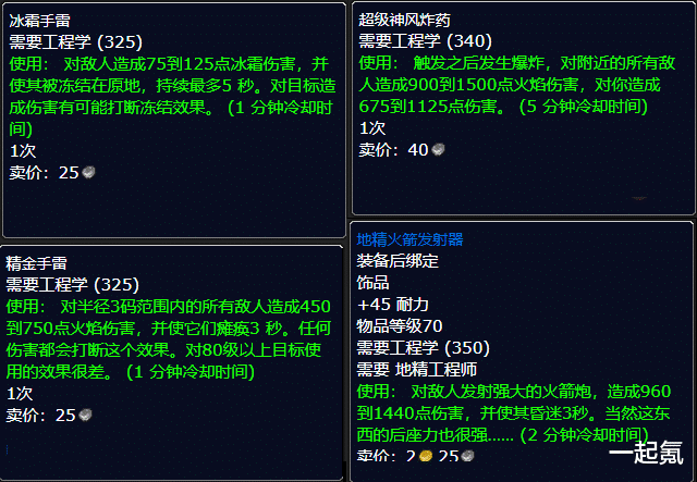 工程学相信不少喜欢pvp的玩家都是必选的,但是防骑也是必不可少的,工程学除了可以制作各种爆炸物,对拉怪的仇恨作用非常大,而且有很多好玩并且实用的物品可以制作出来,比如火箭靴,可以把人打傻的头盔等稀奇古怪的东西;所以适合防骑的第一个商业技能就是工程学了,分支选择地精工程学比较实用。