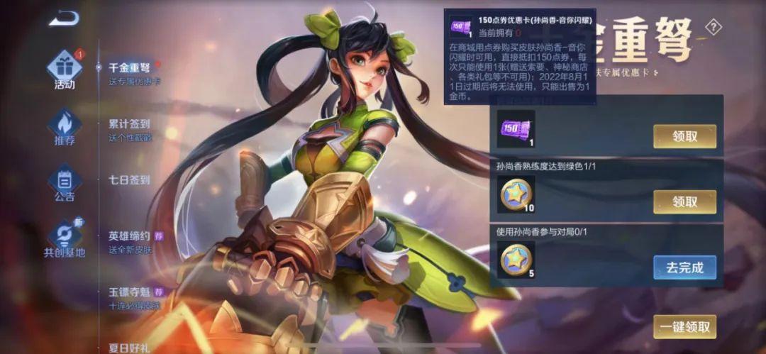 第三个,现在到游戏里,可以直接领取专属的150点券卡,对比其他传说皮肤,价格要便宜一些。