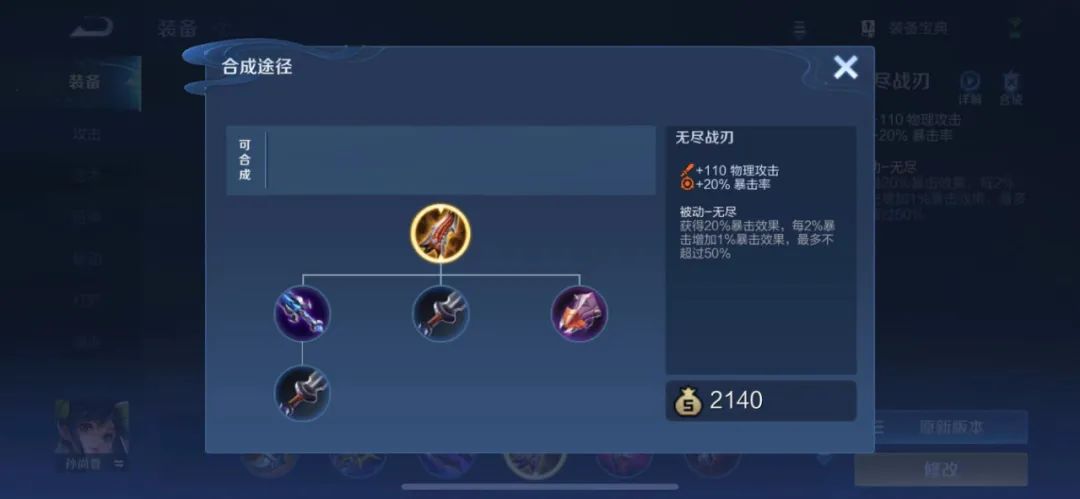 (无尽战刃的暴击效果和暴击率的比例是2:1,基础为20%,上限是50%)