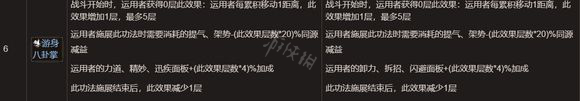 也是类似的效果,蓄力跳叠加命中,可惜不叠化解。而且叠的有点慢,不过逆练开局一直后跳叠满再反击打boss还是可以,但是占三个身法格,优先度在轻身术和化解身法之下。