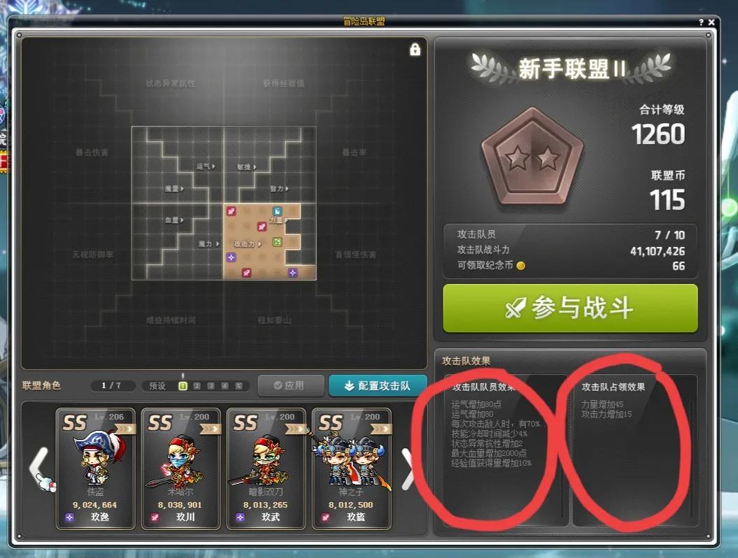 把角色卡片拖入联盟矩阵中,从矩阵中心开始摆放。这样账号就能获得角色卡片本身的收益加成,以及在矩阵中占据的收益加成。(注:相同的角色,其角色卡只能适用等级高的那个。所以重复练一个职业是木有用的。)