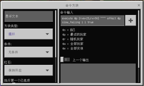 execute @p [rxm=25,rx=90] ~~~ effect @p slow_falling 1 1 true