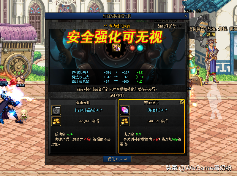 【1、安全强化可无视,超级大坑!】几率不高就算了,花费还很高,而且12武器以上就没用了。就连韩服勇士都觉得是鸡肋设定,更别说狂送12武器的国服了,这也是导致大家不想捡“炉岩核”的核心原因。