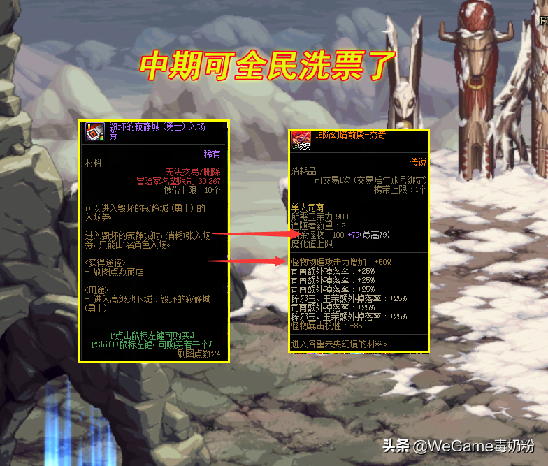 【4、中期可全民洗票】这是韩服发布会的官宣内容之一,绝对属于国服的反向输出更新,具体如下图展示的高级地下城门票界面。