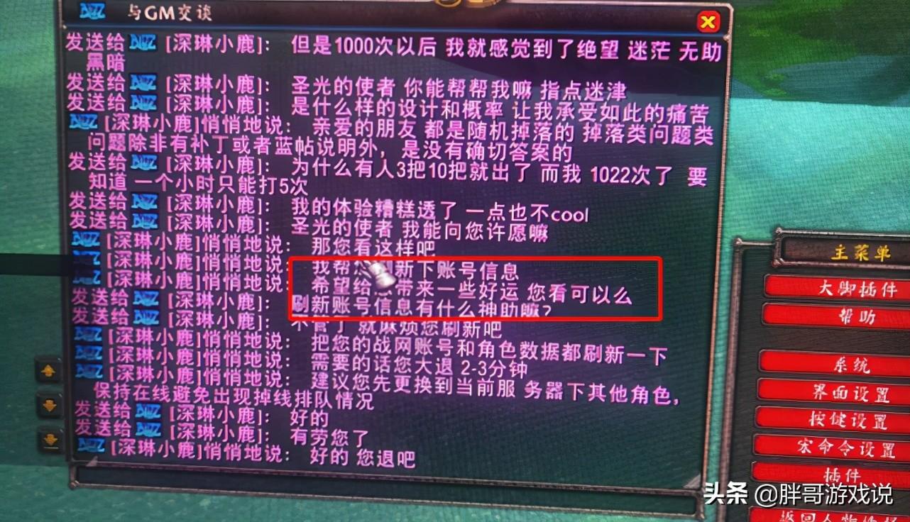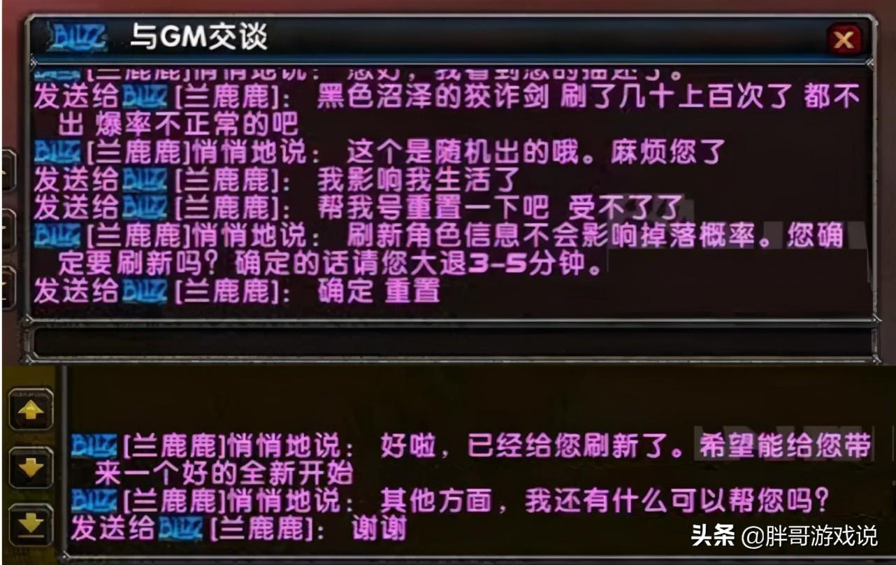 至于找GM重置掉率是什么机制,估计只有“代码哥”知道了。胖哥个人感觉可能是角色的掉率被卡住了,于是出现了长时间刷不到某件装备的情况。当玩家找GM重置角色信息之后便可以重新计算掉率了。