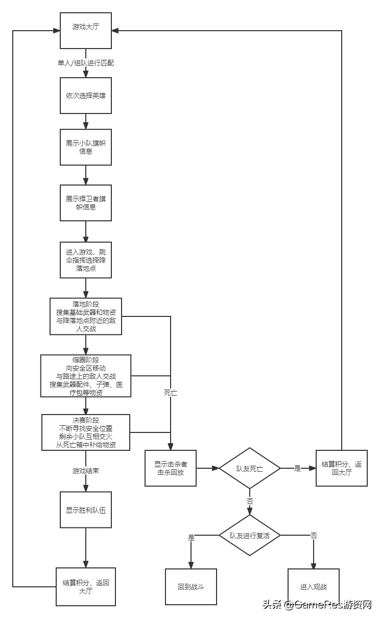 APEX英雄大逃杀模式单局内共有60名玩家组成20支小队,在地图中展开对抗,最终产生一支胜利者小队,其局内战斗流程大致如下: