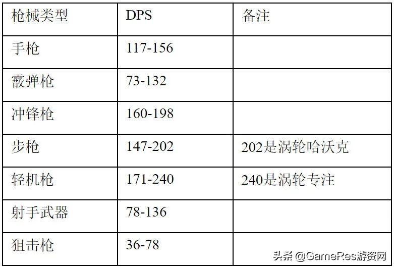 APEX与CS,彩虹六号等其他射击游戏的体验有较大区别,更强调战斗双方(或多方)不断交火、拉扯带来的爽快与刺激,而不是后者双方一遭遇就分胜负的紧张感,从枪械的DPS设计中就可以看出这一点,APEX的枪械DPS相较于其他射击游戏较低,具体见下表: