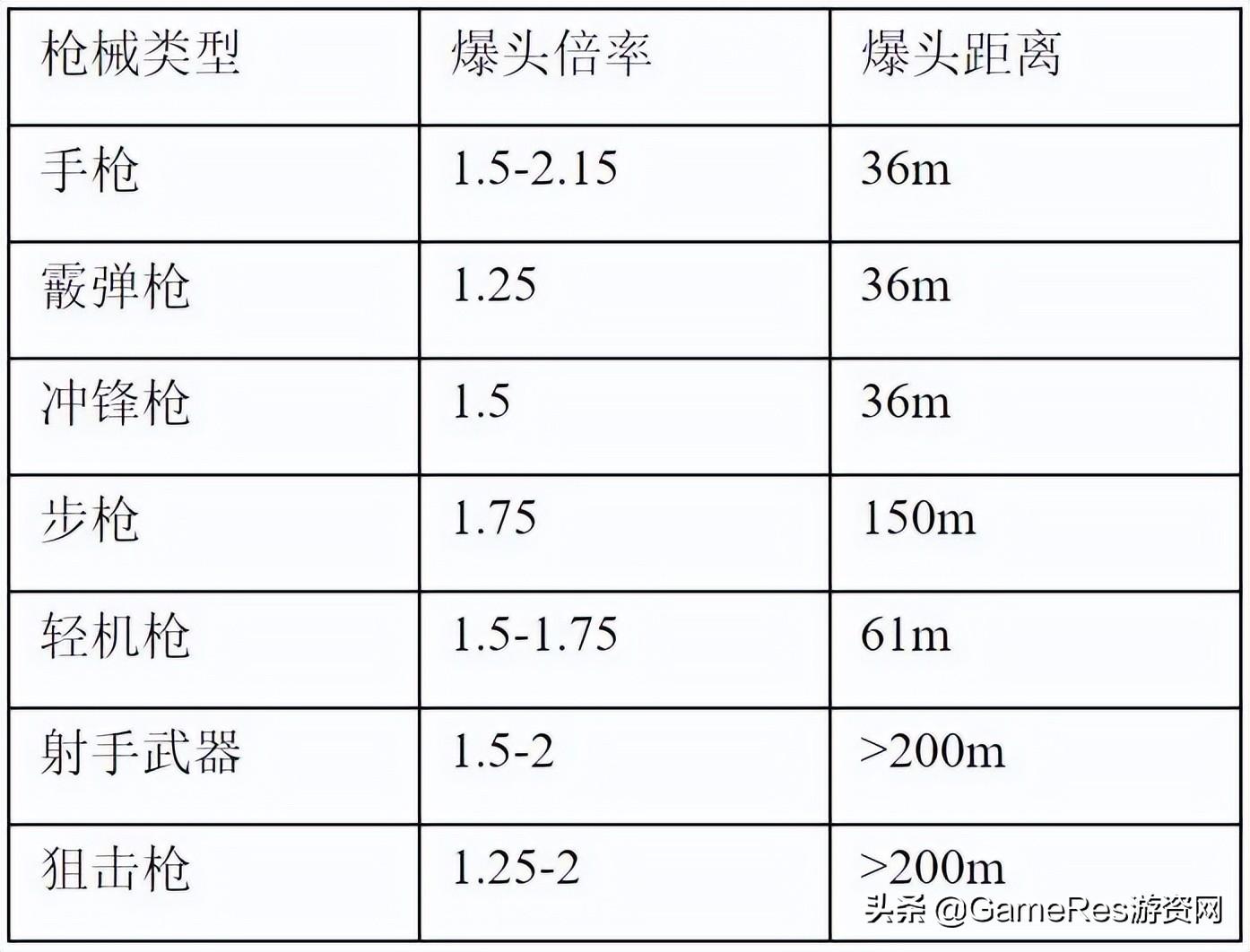 另外有个不容易被察觉的属性是爆头距离,每种枪械在爆头距离以外即时命中头部也无法产生爆头伤害,同样也是突显每种枪械定位。