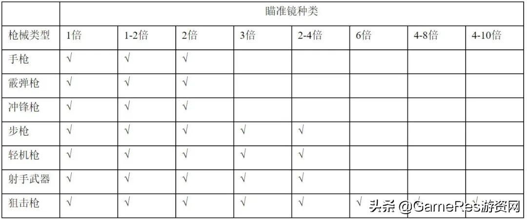 APEX中不同枪械可用的瞄准镜不同,通过这样的方式很大程度上限制了每种枪交战的适用距离,是做区分枪械的定位的方法。