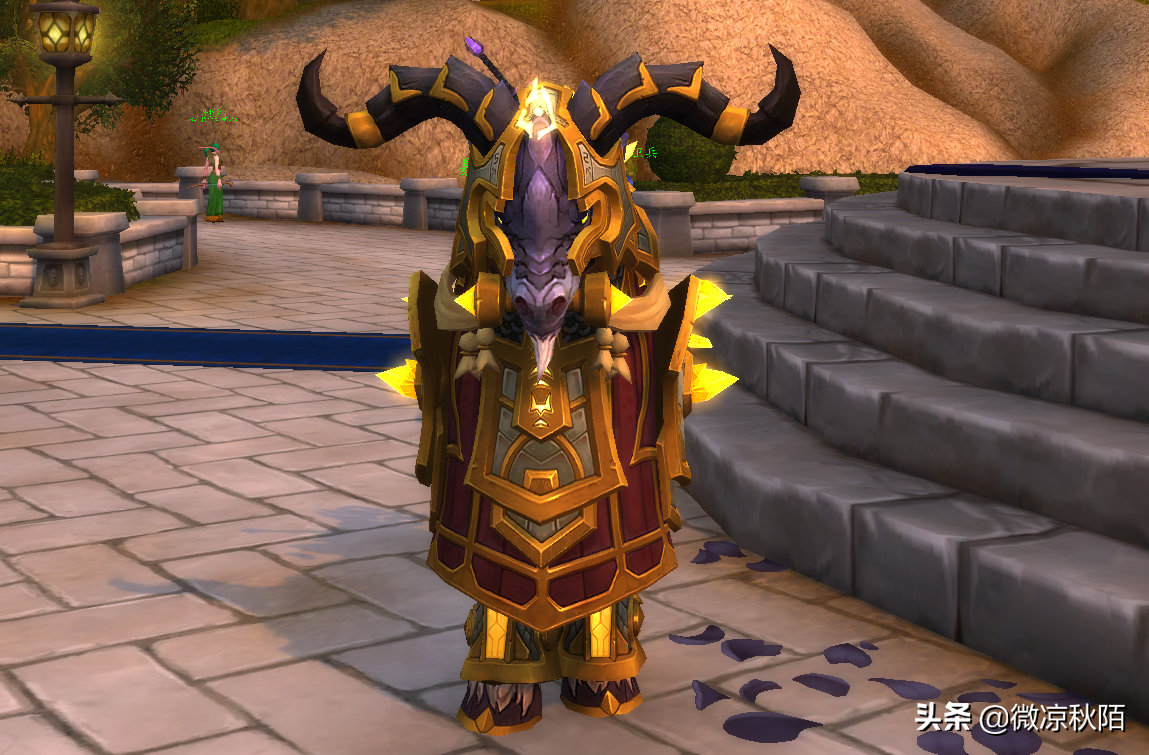 9.1.5测试服的早期数据,就出现了“光铸塔布羊”的坐骑数据,被标记为光铸德莱尼的圣骑士职业坐骑。经过PTR的更新后,这个同盟种族的职业坐骑在PTR实装,名字叫“光铸废墟奔踏者”,确实是德莱尼同盟种族的圣骑士坐骑,外观很符合光铸德莱尼的属性,一身金灿灿的装饰,还有厚重的盔甲,搭配同盟种族的传承护甲,还真的霸气十足。