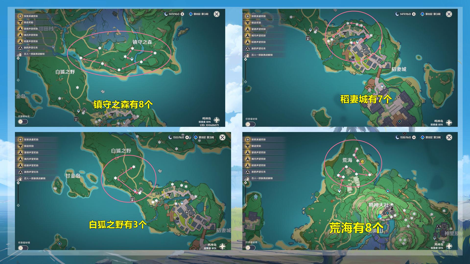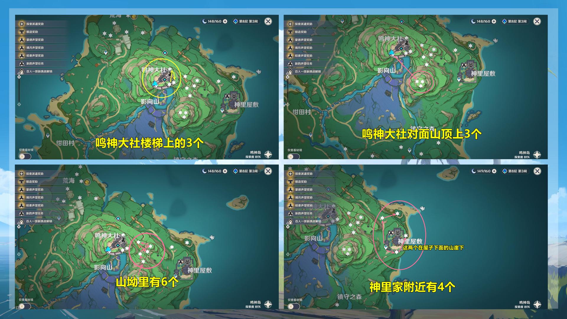 上图标注了所有在传送点附近的48个绯樱绣球,其他距离传送点较远的,或者采集起来较为麻烦的就并未标注在图中。绯樱绣球48小时刷新一次,想入手神里绫华的玩家现在就可以准备了。