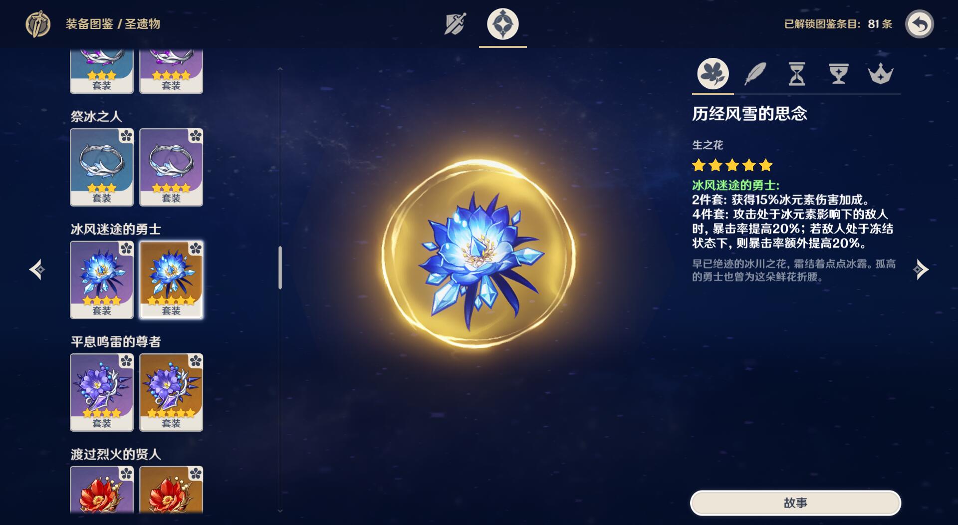 圣遗物方面,神里绫华一般会选择使用“冰伤4件套”,但是要注意,提前刷圣遗物有可能会触发仓检机制,增加抽卡出货难度。